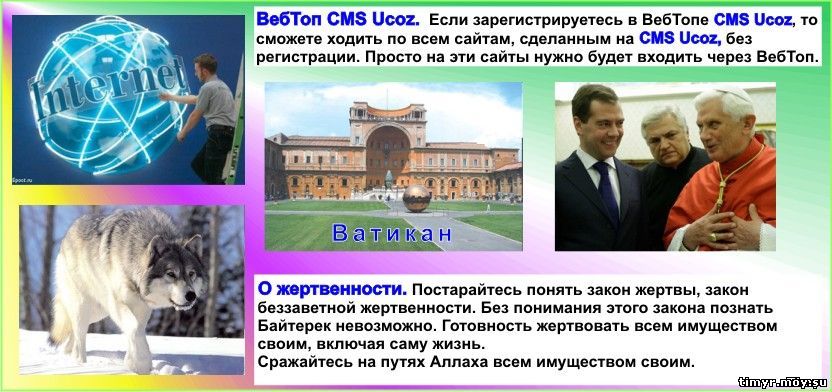 Я решил уничтожить все свои сайты, или передать их любому желающему, если таковые найдутся. Я зашел в очередной тупик, чтобы выйти из него я принял решение уничтожить все свои сайты, которые сегодня имеются у меня: - http://timyr.moy.su/ - http://au.moy.su/ - http://au-zap.moy.su/ - http://tsv-11.narod.ru/ - http://au-tsv.narod.ru/ - http://tsv-11.ya.ru/ - http://au-tsv.ya.ru/ - http://clubs.ya.ru/4611686018427470747/